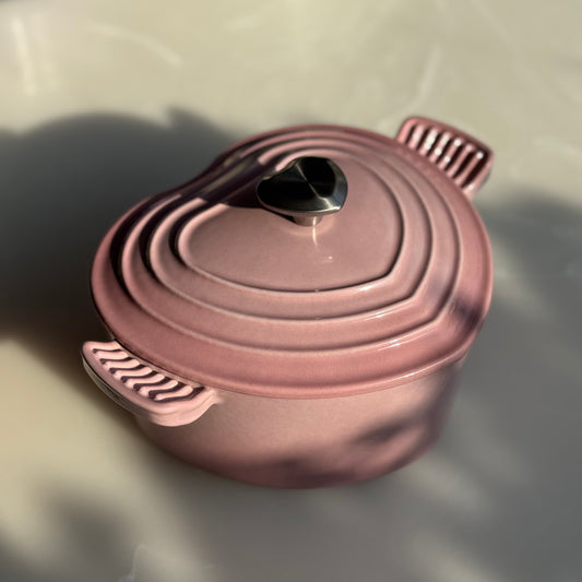 Heart-Shaped Pink Enamel Cast Iron Dutch Oven with Lid | Pink and Purple