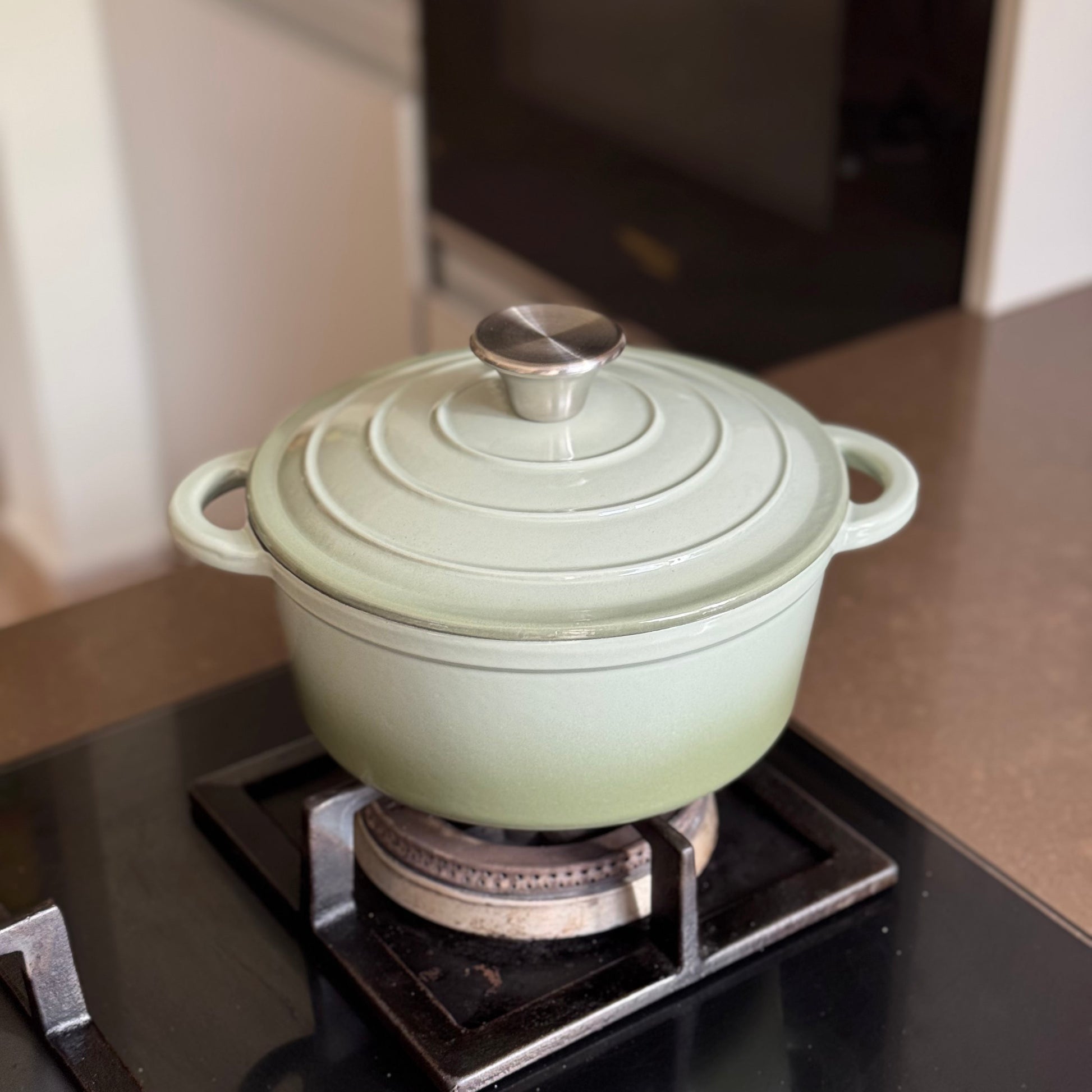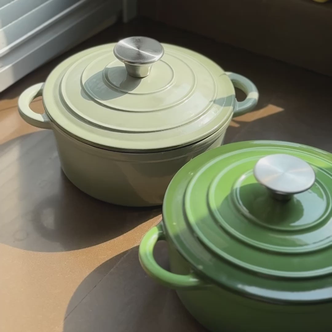 Circular Enamel Cast Iron Dutch Oven with Lid | Casserole Pot | Green and Dark Green