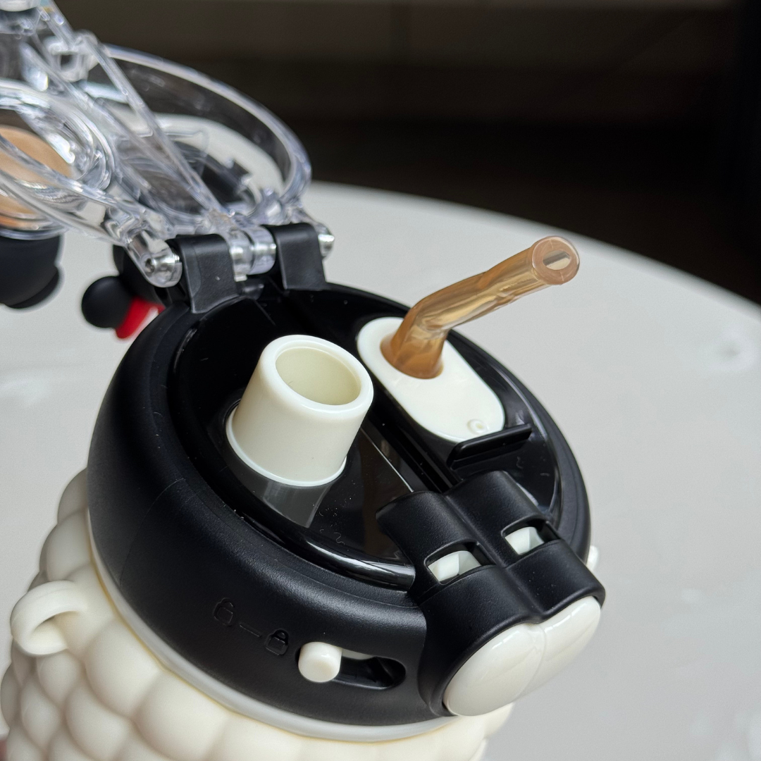 • Dual-Button Lid: One button for direct drinking, another for the straw, making hydration easy and convenient.