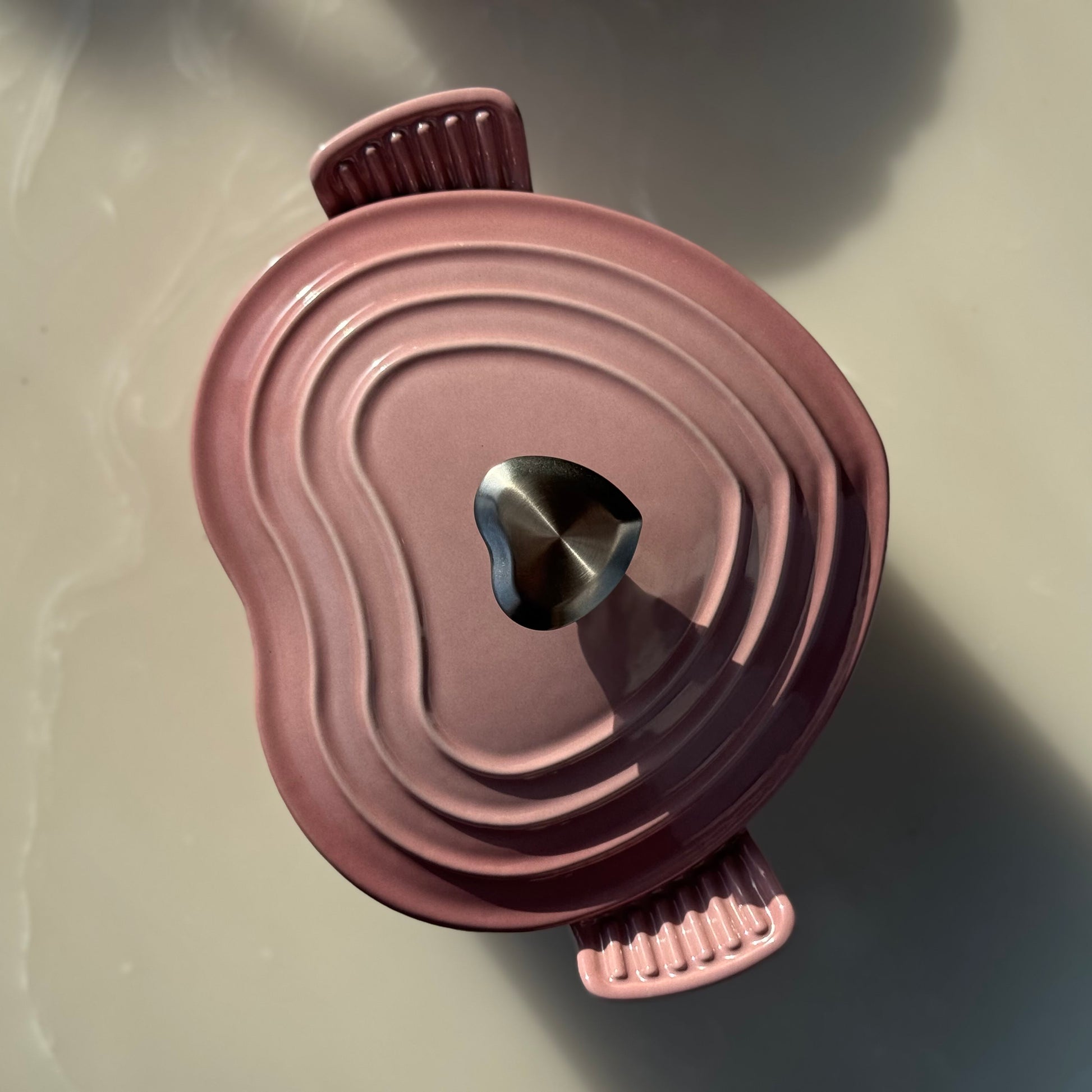 Heart-Shaped Pink Enamel Cast Iron Dutch Oven with Lid | Pink and Purple