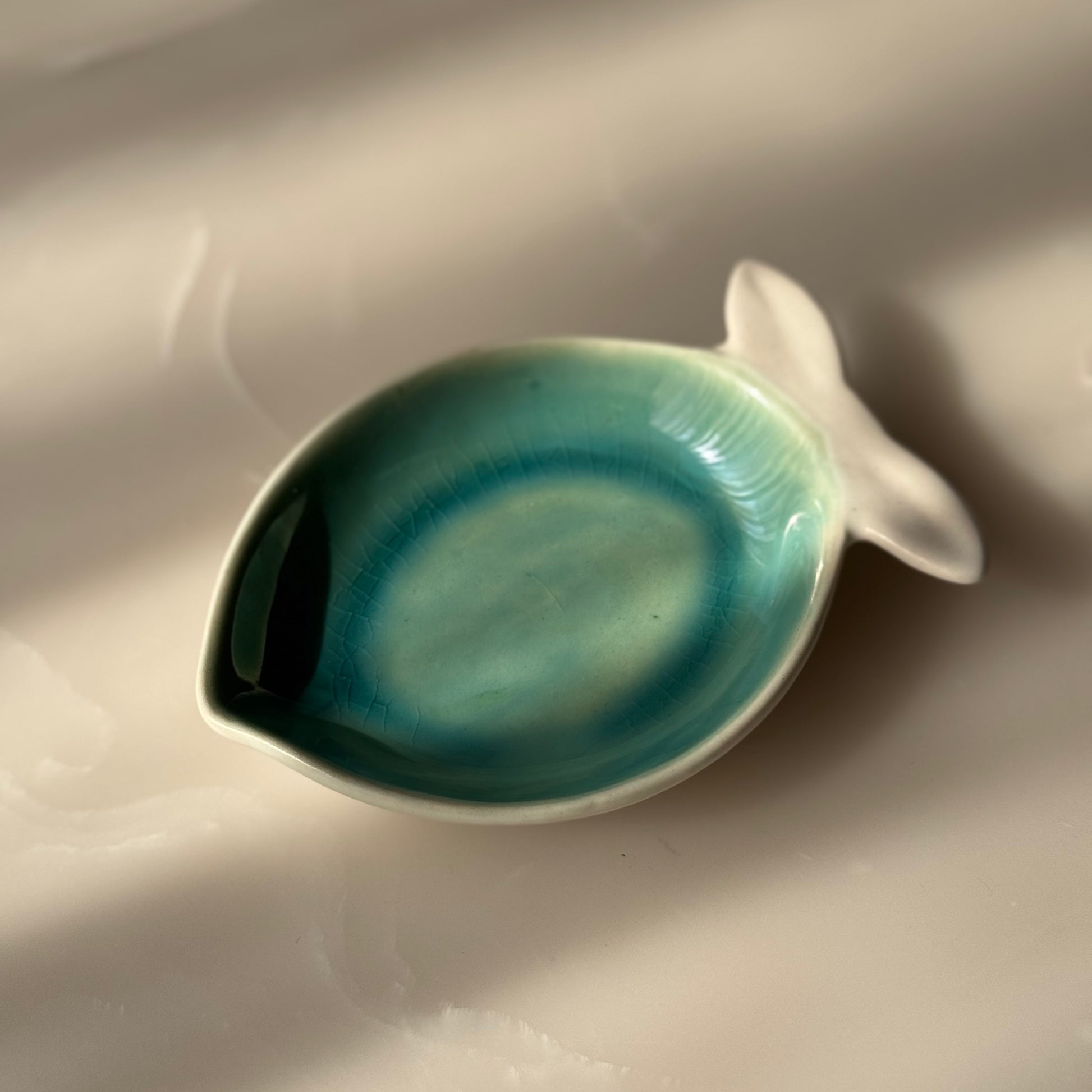 - Glazed ceramic dipping plate for sauces and condiments