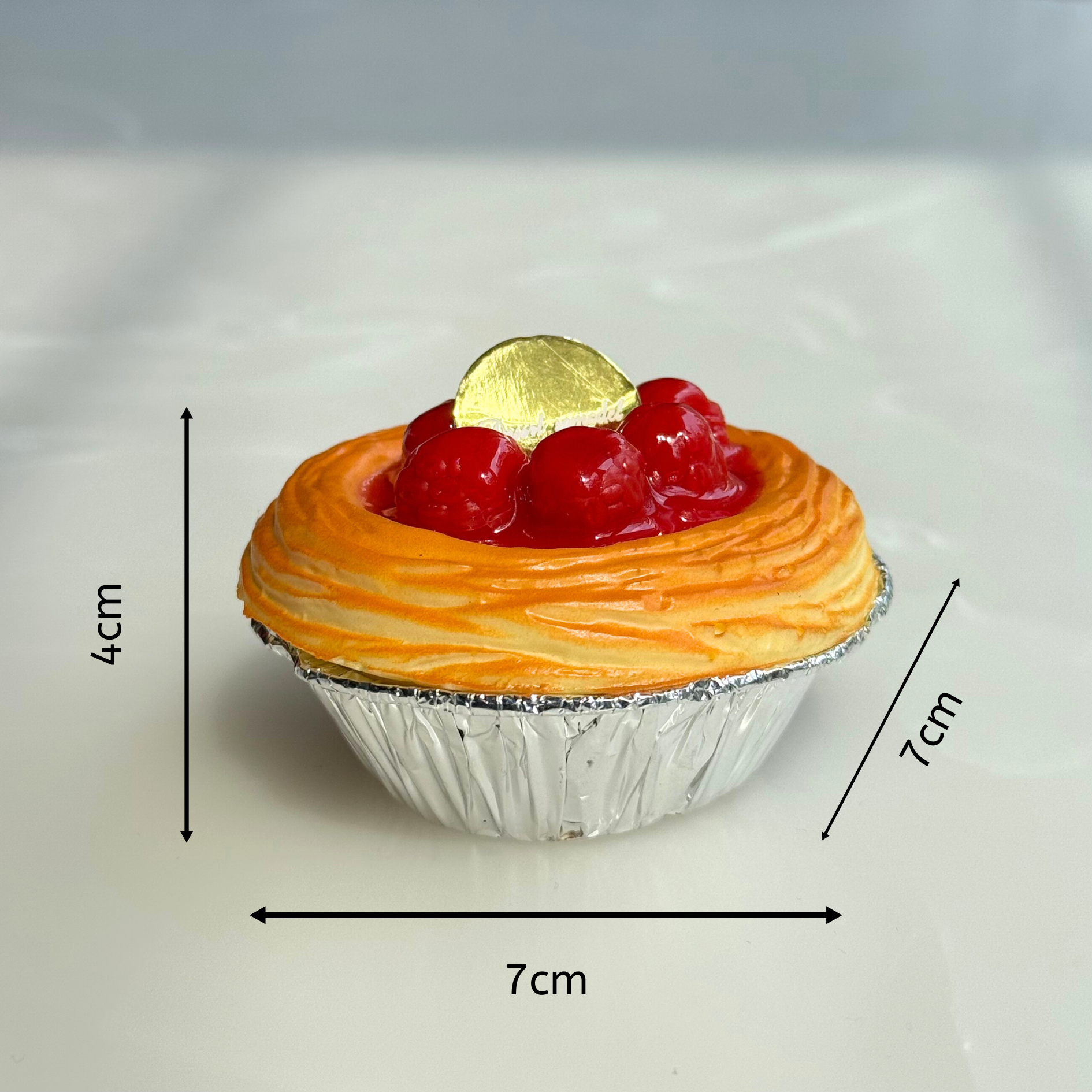 • 🧁 Lifelike Finish: From the glistening fruit toppings to the pudding-style base, every detail is crafted to mimic a fresh-out-of-the-bakery tart.